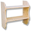 In legno grezzo di abete, levigato, non verniciato e non trattato, traspirante. Doppio ripiano con profilo smussato. Dimensioni (Profondità x Lunghezza x Altezza) 29 x 63 x 60 cm