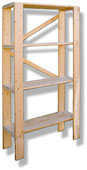 In legno grezzo di abete, levigato, non verniciato e non trattato, traspirante, viene fornito già montato. Dotato di 4 ripiani con profilo smussato, regolabili in altezza. Dimensioni (Profondità x Lunghezza x Altezza) 32 x 88 x 176 cm